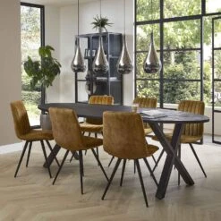 Deze ovale eetkamertafel ‘Yucon black’ is 240 cm breed en heeft een bladdikte van 30 mm. De tafel is uitgevoerd in massief acaciahout met een gun metal frame. Trendy en chique zijn de woorden die deze tafel perfect omschrijven. De tafel bestaat er ook in 200 cm. Deze tafel maakt onderdeel uit van de ‘Yucon black’ serie.