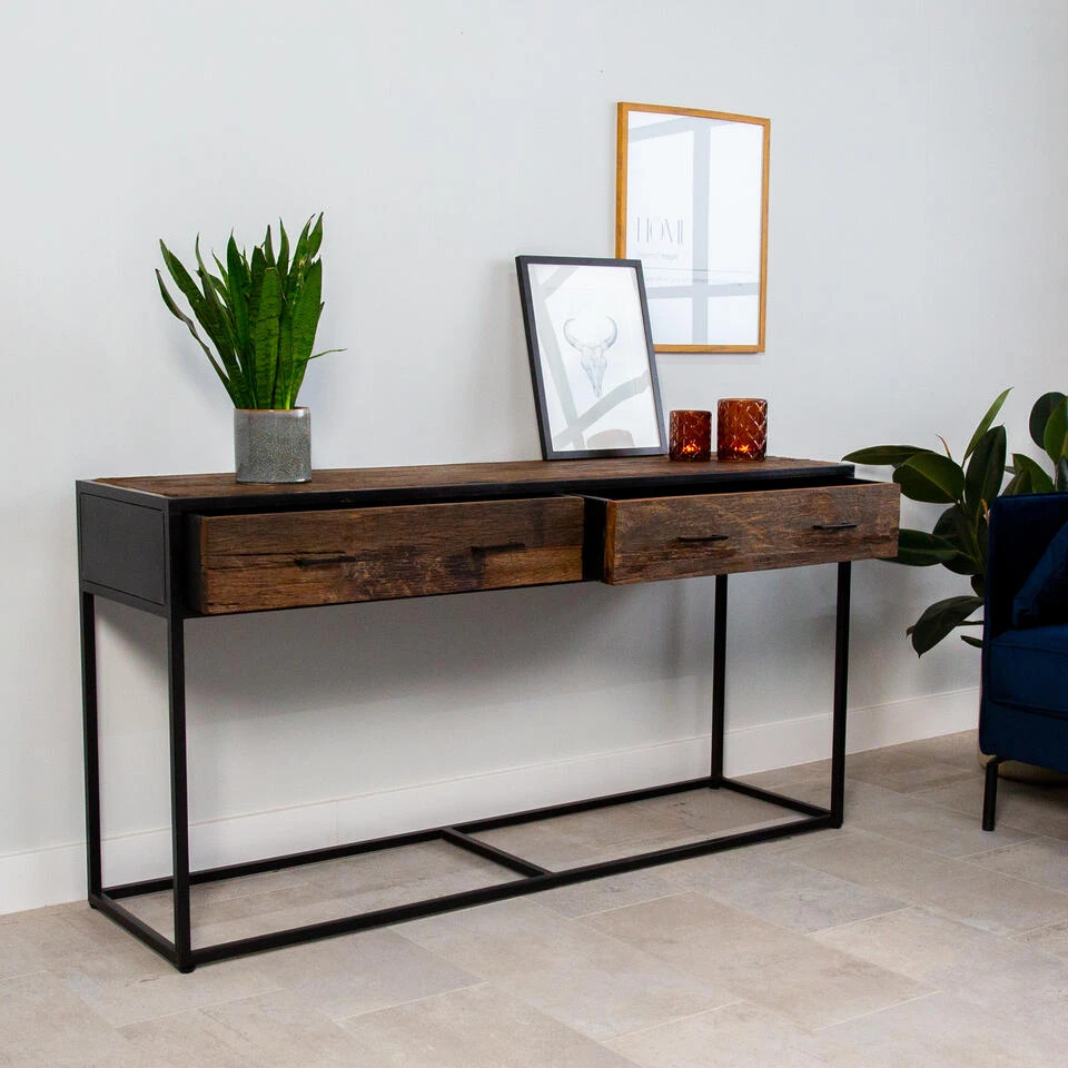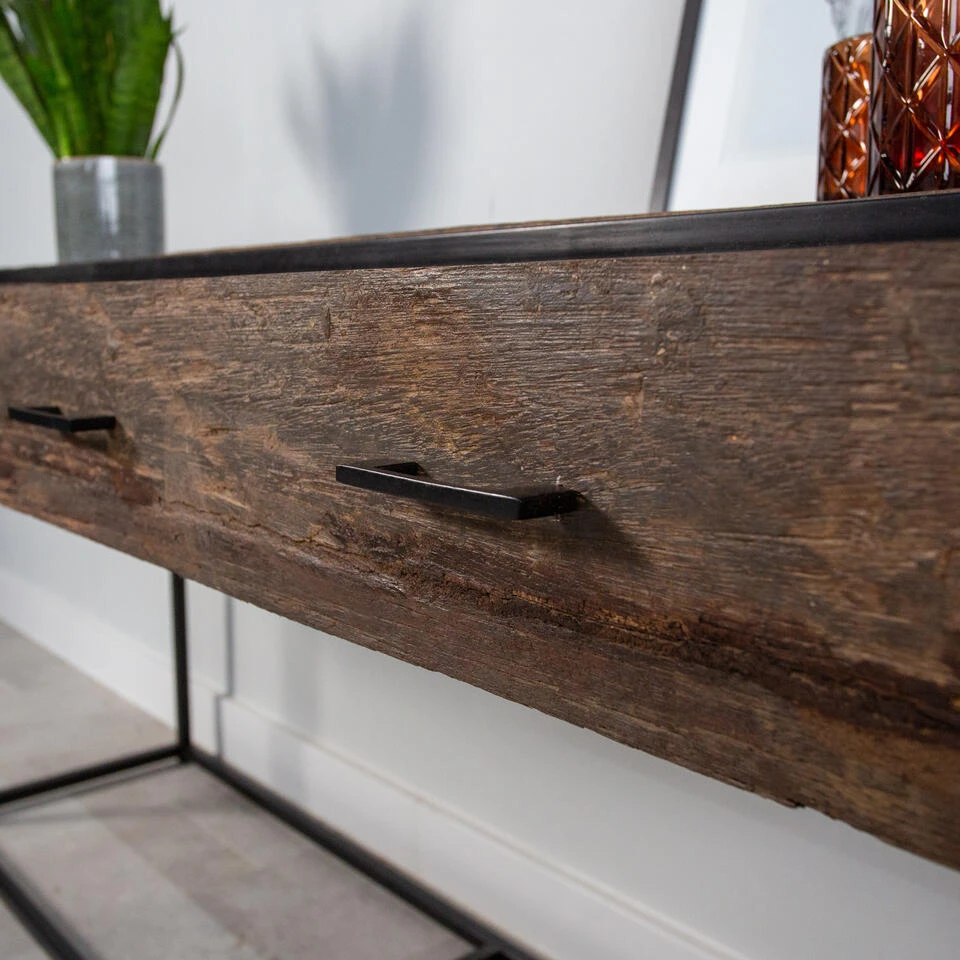 De industriële sidetable Rayan is uitgewerkt in sleeper wood. Dit type hout geeft de sidetable een robuuste uitstraling. De combinatie met het zwarte frame geeft de sidetable een echte industriële look. Dit maakt de industriële sidetable Rayan tot de perfecte sidetable voor jouw woonkamer, slaapkamer of hal!