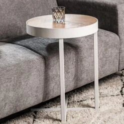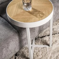 Deze prachtige laptoptafel valt op door het kleurgebruik, materiaalgebruik en de prachtige combinatie tussen hout en wit staal. De ronde variant heeft een diameter van 45 cm, met een hoogte van 60.5 cm. De tafel is voorzien van een stevig frame in wit metaal. Dit geeft de tafel een rustige, prettige en warme uitstraling. Deze bijzettafel is gemakkelijk aan de bank bij te schuiven. Het blad is gemaakt van eiken veneer. Jilke is ook verkrijgbaar als eettafel (rond of ovaal) en salontafel. Een genot om naar te kijken. Ben jij opzoek naar een laptoptafel net anders dan anderen? Dan is Jilke de perfecte keuze! Combineer de diverse meubels uit de Jilke serie voor eenheid binnen het interieur.