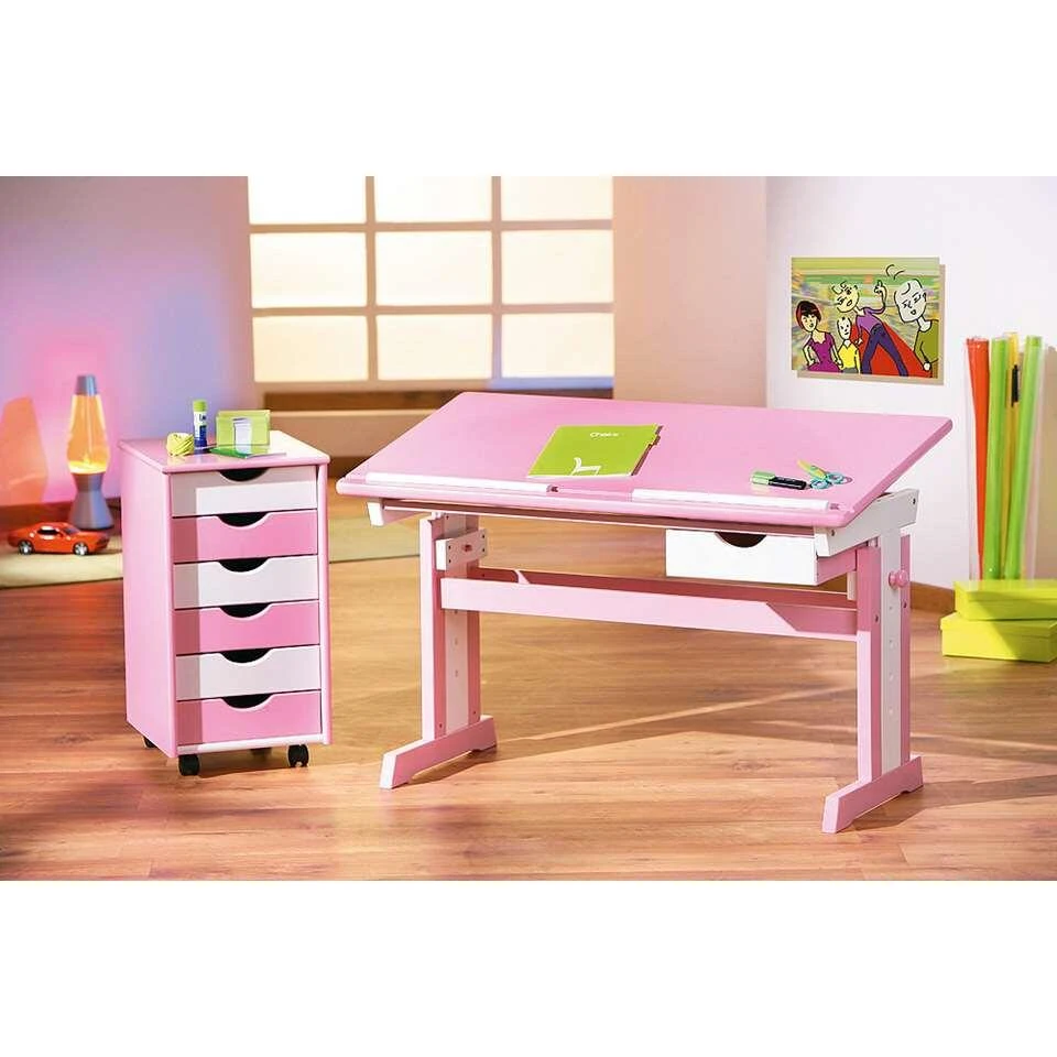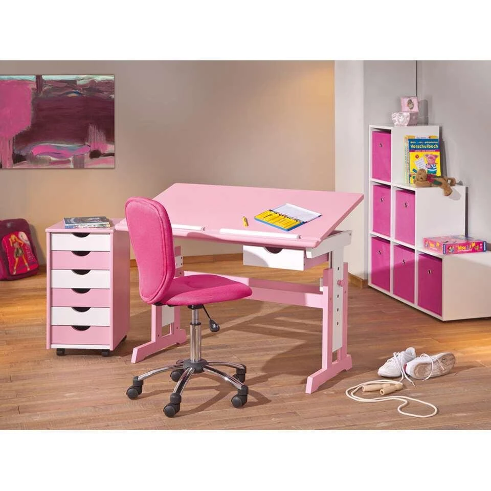 Bureau Cecilia is een verstelbaar bureau voor kinderen. Het bureau is roze met wit en gemaakt van MDF. Dit bureautje is heel gemakkelijk in hoogte verstelbaar. Het bureau heeft een lade en een balkje om te voorkomen dat spullen van je bureau afvallen als je het blad kantelt.Het bureau is ook nog is in hoogte verstelbaar, ideaal!