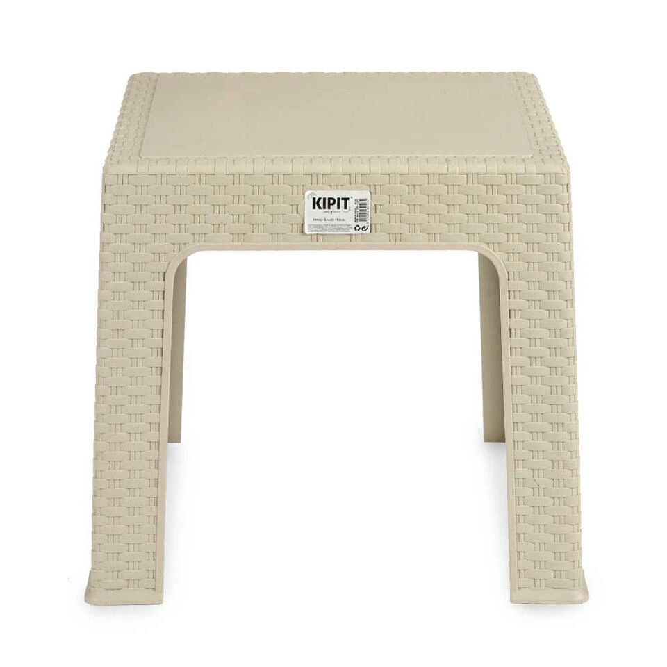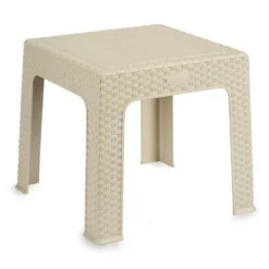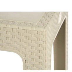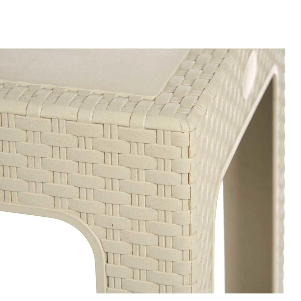 Rotan bijzettafeltje/plantenverhoger in het creme/beige 42 cm hoog, 47 cm breed/diep geschikt voor binnen en buiten gebruik. Handig multifunctioneel bijzet tafeltje van kunststof.