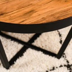 Van het geliefde woonmerk Vurna komt de Kjeld serie. Deze serie bestaat uit een laptoptafel, saslontafelset, salontafel 80 cm en salontafel 60 cm. Met deze items tover jij je woonkamer met gemak om in een natuurlijke, prettige en fijne omgeving. De serie is gemaakt van bruin acaciahout. Het frame is van zwart staal. Deze combinatie geeft de Kjeld serie een stoer en industrieel uiterlijk. De salontafel 80 cm valt op door zijn ronde vorm en speelse onderstel. De afmetingen zijn: B80xD80xH45. Combineer deze gave salontafel met de andere items uit de Kjeld serie voor eenheid binnen het interieur. Het gebruik van onderzetters wordt altijd geadviseerd om de levensduur van het product te verlengen.