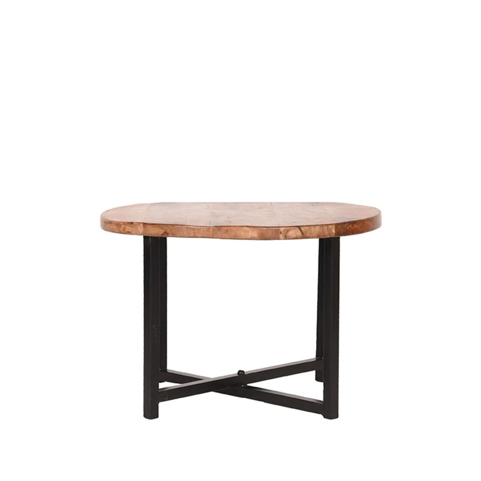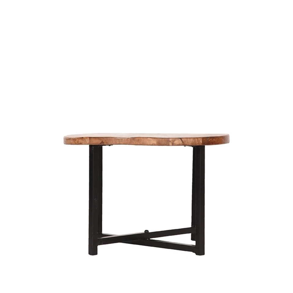 Bijzettafel Dex heeft een rond mango houten blad met een beschermende coating. Het blad in de kleur rough is voorzien van de mooiste natuurlijke kleurnuances en de fraaiste nerven. Het kruisvormige, grof afgewerkte metalen frame in de kleur zwart geeft de tafel een stoer, krachtig en industrieel karakter met een ludiek effect.