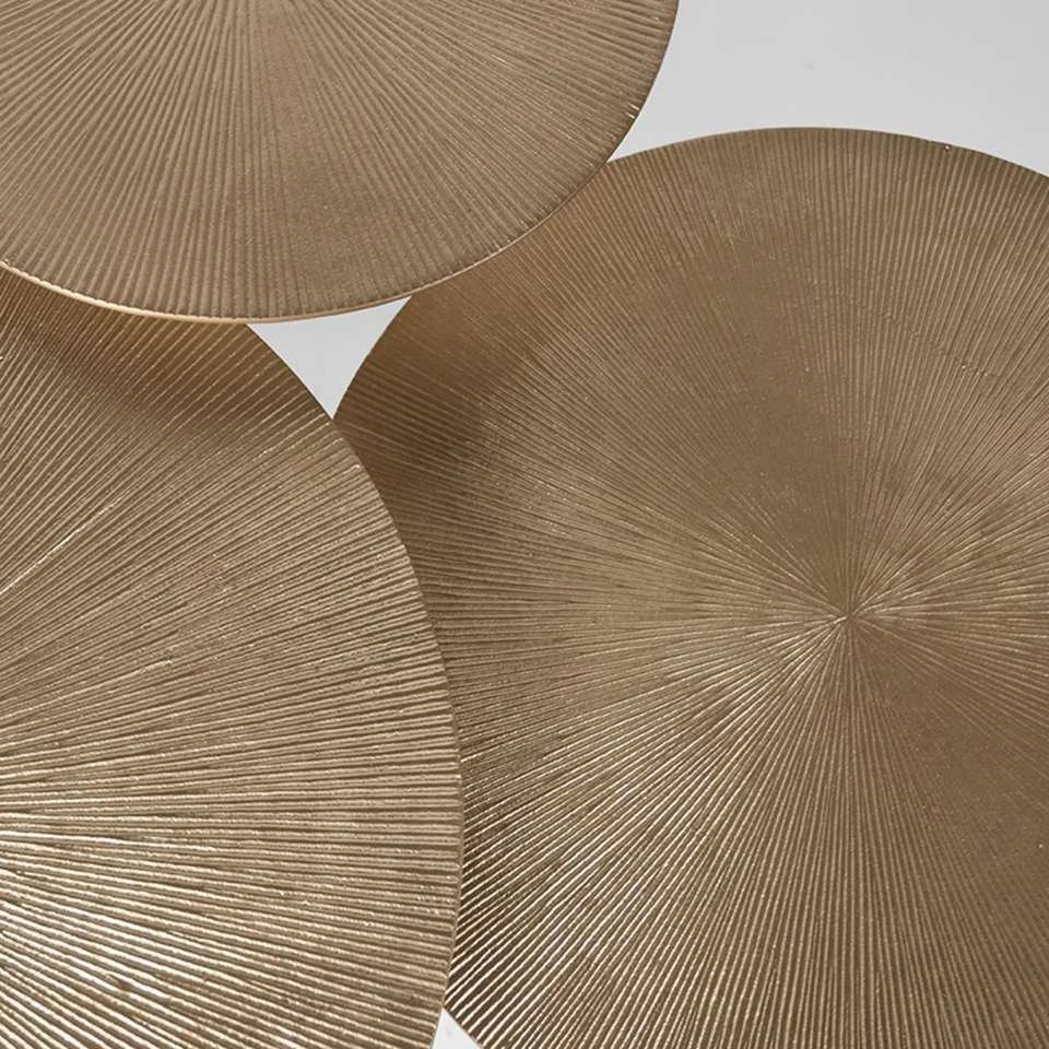 Salontafel set Nobby, uitgevoerd in antiek goud bestaat uit drie tafels. De grootste ronde tafel van 60x60x45 cm dient als mooie basis waarna de tafel van 50x50x40 cm er onder geschoven kan worden en de kleinste en hoogste tafel van 40x40x50 cm er prachtig overheen geschoven wordt. De tafels zijn gemaakt van gegoten metaal en hebben een rond blad. De top is voorzien van een prachtige gravure; lijnen vanuit het centrum lopend naar de buitenkant. De speelse uitlopende poten zorgen voor stevigheid en een hip uiterlijk.