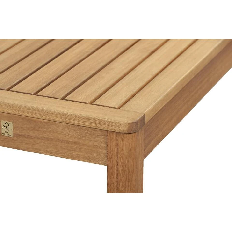 Deze stevige en rechthoekige bijzettafel heeft een afmeting van 72x40x30 cm. Hij is gemaakt van hoogwaardig eucalyptushout FSCĀ®. Deze houtsoort valt onder de noemer hardhout, die kenmerkend is voor een lange levensduur. Zo kan jij dus optimaal genieten van jouw loungetafel.Ā