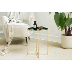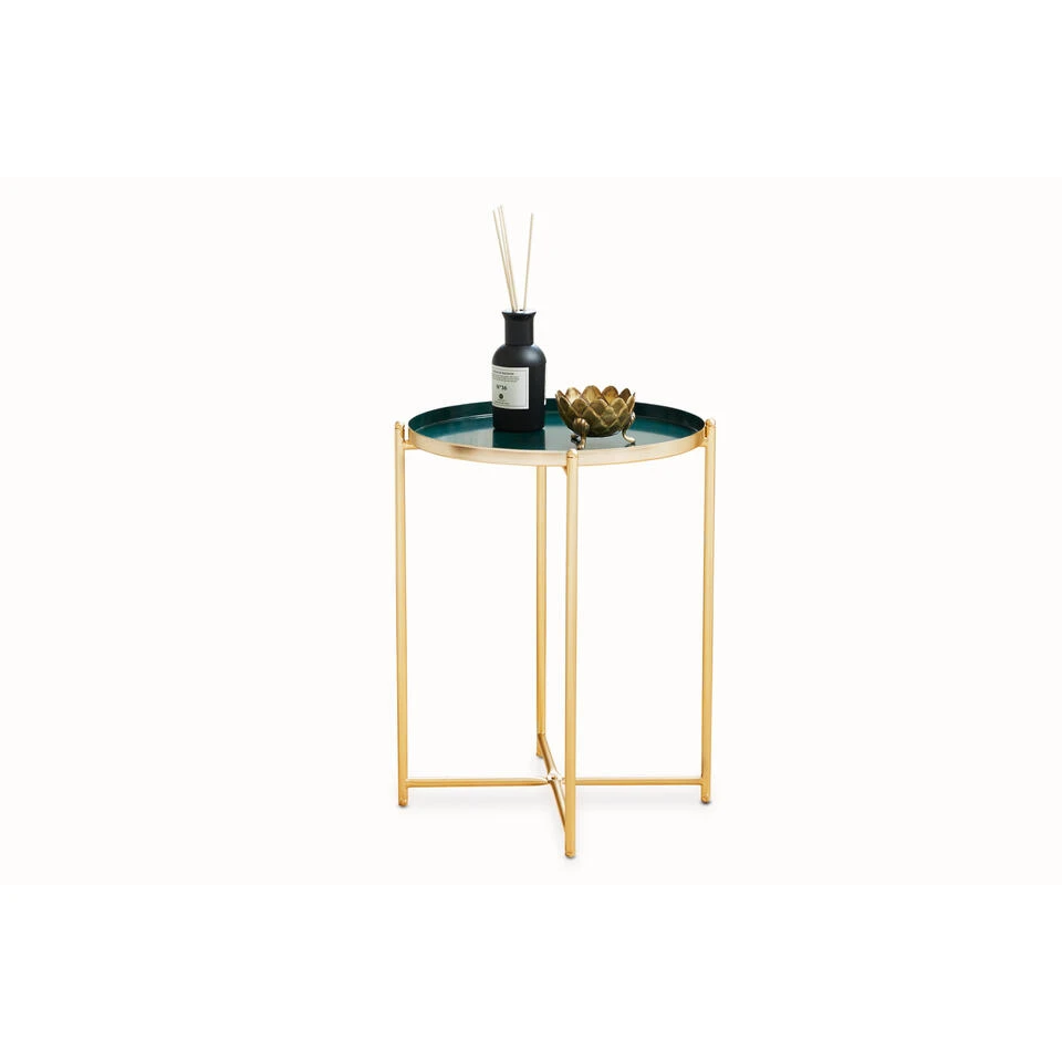 Dit tafeltje komt in zowel een modern, industrieel, landelijk, als vintage ontworpen woonruimte tot zijn recht. Groen en gouden koffietafel voor woonkamer, keuken, slaapkamer, kantoor en gang: deze bijzettafel is bijzonder veelzijdig!