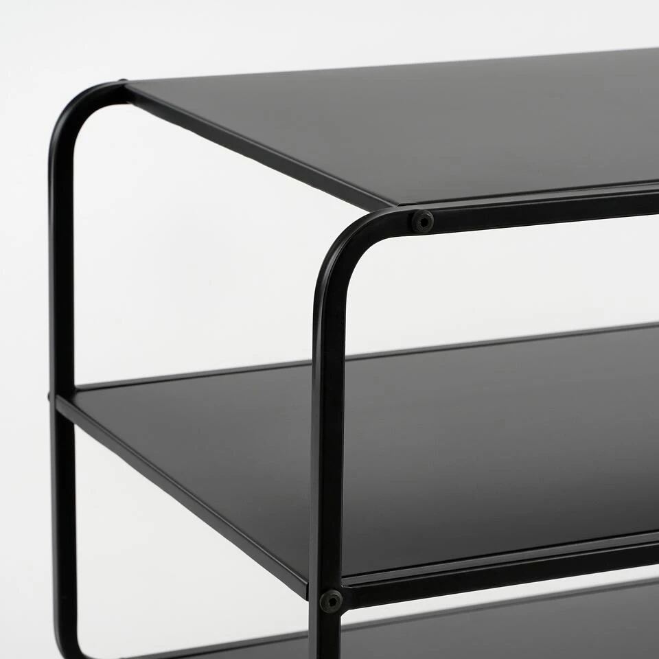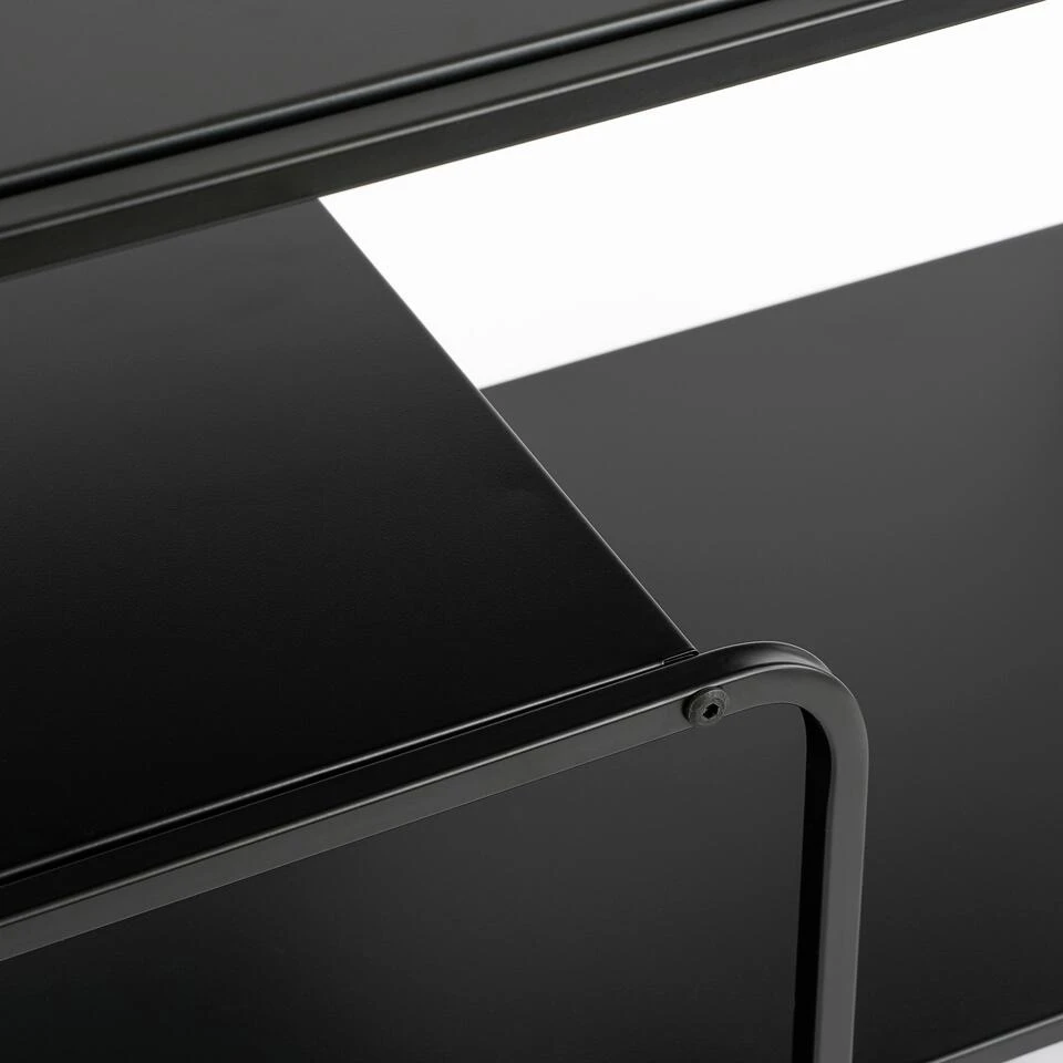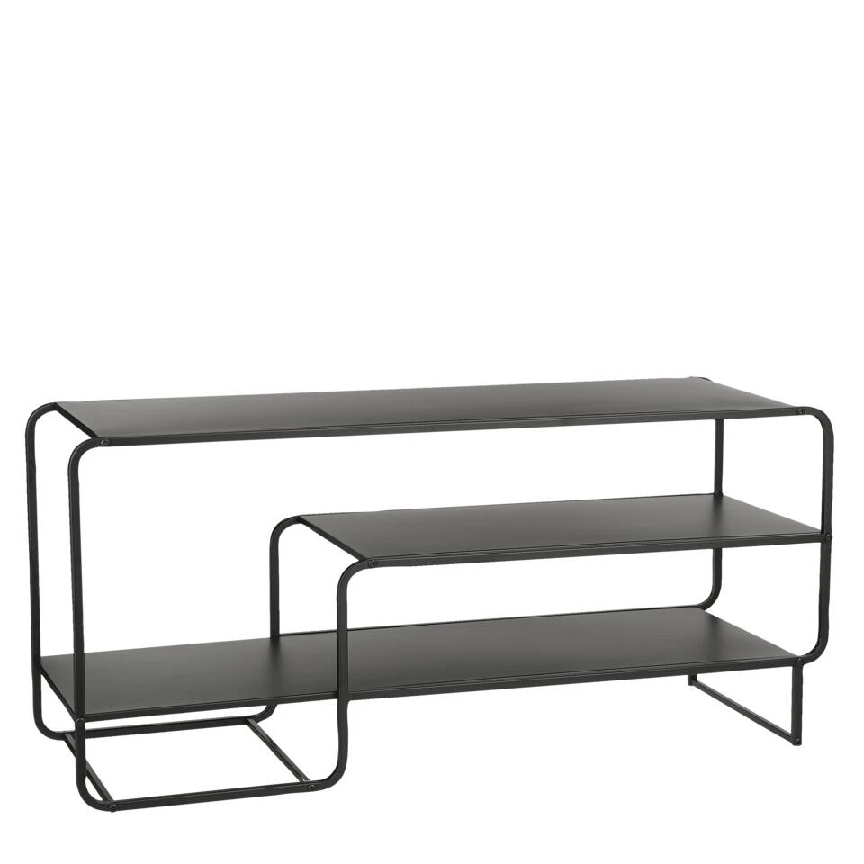De Jules salontafel uit de collectie van Mica Decorations valt op door de drie tafelbladen in verschillende hoogtes die aan elkaar verbonden zijn. Het tafeltje is gemaakt van stevig metaal en afgewerkt in een zwarte kleur. Kortom, een speels geheel en ook nog eens super praktisch! De moderne bijzettafel is 110 cm lang, 38 cm breed en 50 cm hoog. Ook stijlvol om te combineren met meerdere tafels uit de Jules collectie van Mica Decorations.