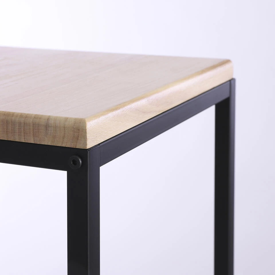 - Het houten tafelblad heeft een warme kleur