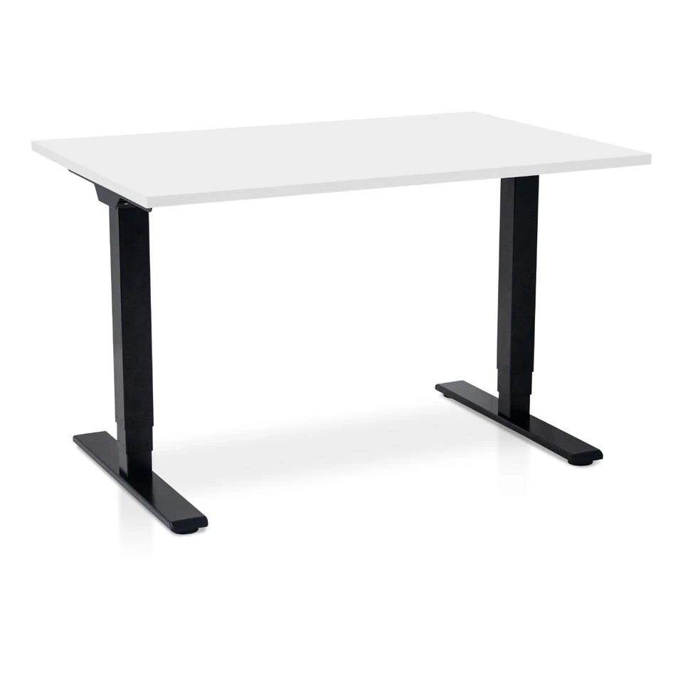 Het strakke bureau voorziet je van een fijn bureau dat dankzij het strakke design overal thuis past. Het bureau is handmatig verstelbaar, waardoor je het bureau zo af kunt stellen dat je de gehele dag een ergonomische werkhouding hebt. Je kunt het bureau tussen de 65 en 130 cm verstellen (exclusief blad 62.5- 127.5), hierdoor kan het bureau voor iedereen een fijne werkhoogte creëren. Het zwarte frame van het bureau gaat mee met de laatste trends en zorgt er hierdoor voor dat jouw thuiskantoor er strak en modern uitziet.
