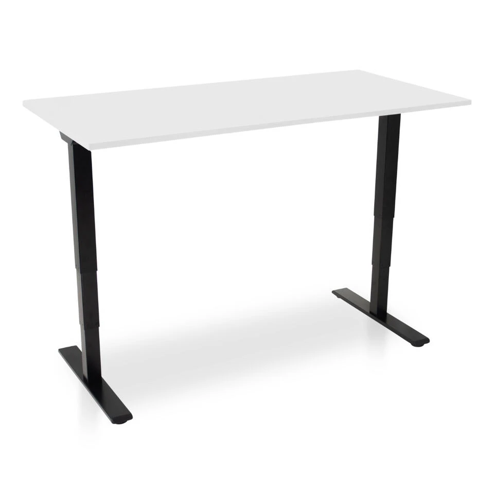 Het strakke bureau voorziet je van een fijn bureau dat dankzij het strakke design overal thuis past. Het bureau is handmatig verstelbaar, waardoor je het bureau zo af kunt stellen dat je de gehele dag een ergonomische werkhouding hebt. Je kunt het bureau tussen de 65 en 130 cm verstellen (exclusief blad 62.5- 127.5), hierdoor kan het bureau voor iedereen een fijne werkhoogte creëren. Het zwarte frame van het bureau gaat mee met de laatste trends en zorgt er hierdoor voor dat jouw thuiskantoor er strak en modern uitziet.