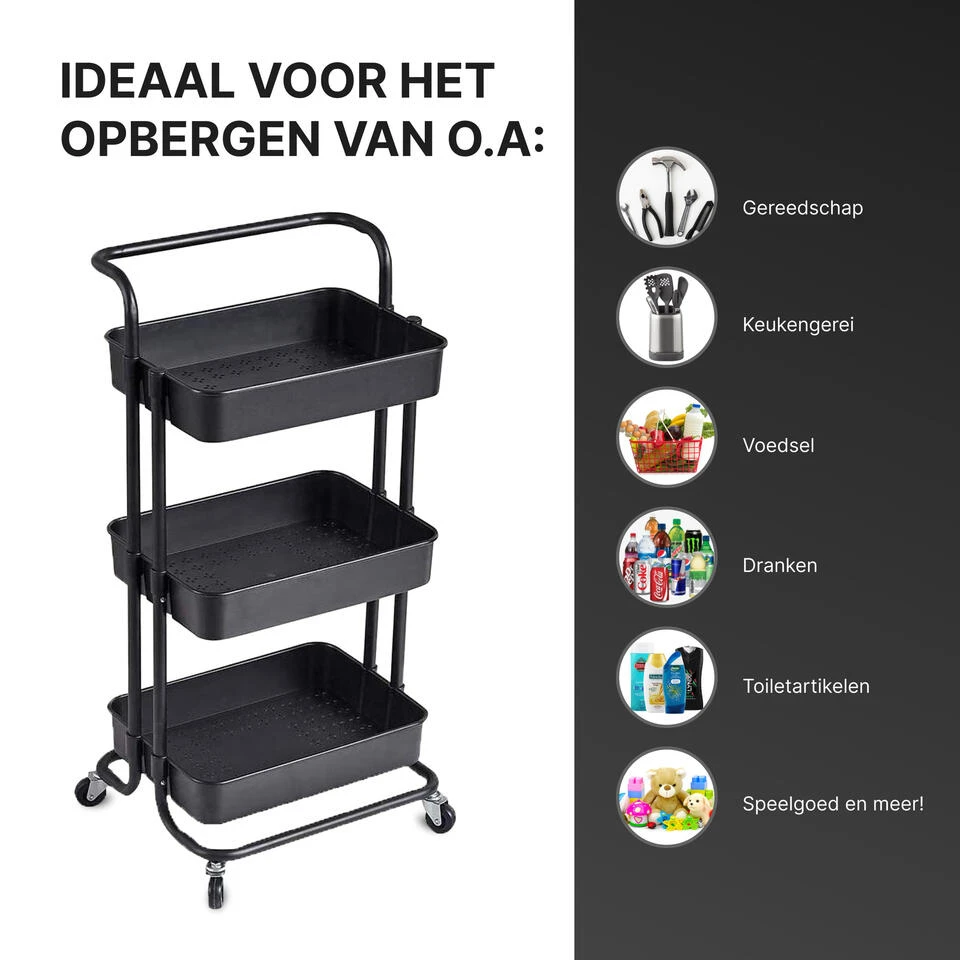 TIJDSBESPARING: U nodigt vaak vrienden uit om thuis te eten, maar het kost tijd om heen en weer te lopen van de keuken naar de eetkamer tafel? Plaats de borden, glazen, potten enz. op deze keukenwagen met 3 etages en rijd deze zo naar de tafel.