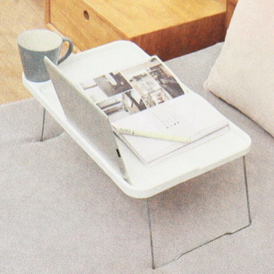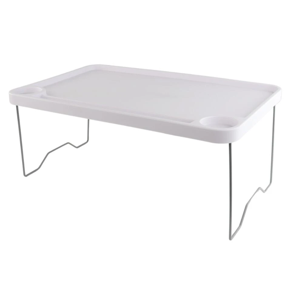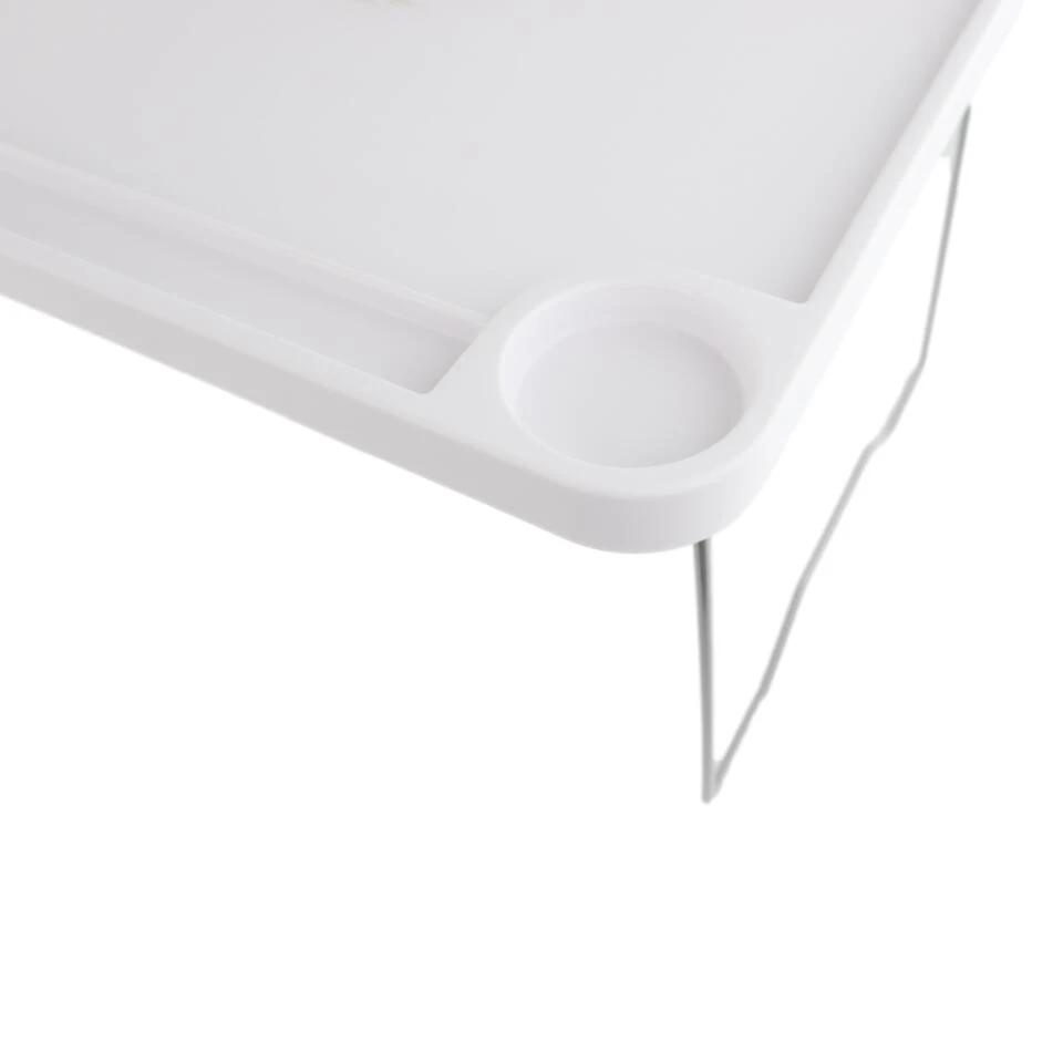 Laptoptafel van Orange85. Ideaal voor gebruik in bed of om een laptop op te zetten. De laptoptafel is inklapbaar en neemt hierdoor minder ruimte in. De tafel is wit van kleur.