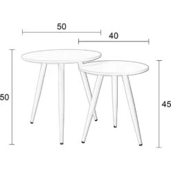 Set van 2 bijzettafels verkrijgbaar in de kleuren zwart en wit. De Daven bijzettafels hebben een gelakt MDF blad en metalen poten.