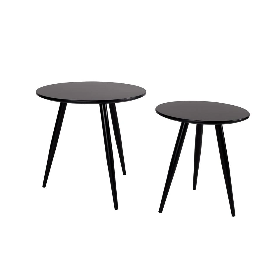 Set van 2 bijzettafels verkrijgbaar in de kleuren zwart en wit. De Daven bijzettafels hebben een gelakt MDF blad en metalen poten.
