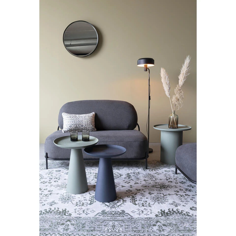 Bijzettafel Ringar is een vrolijk metalen, pion-vormig tafeltje dat helemaal in één kleur is uitgevoerd. En in de kleur heb je de keuze uit maar liefst vier trendy tinten. Opvallend is ook de mooie en subtiele structuur die in de matte poedercoating is opgenomen. Het is een cirkelpatroon dat in kringen steeds groter wordt, alsof je een steen in het water hebt gegooid, maakt dit bijzettafeltje nog interessanter.