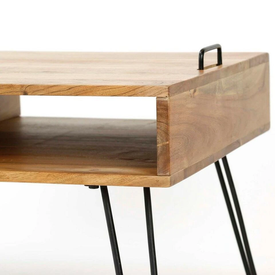 De Quinten sidetable is de perfecte combinatie tussen een natuurlijk en modern design. Deze tafel is uitgevoerd in massief acaciahout en bevat twee open vakken. In deze vakken kunnen gemakkelijk kleine spullen worden gelegd. Om dit meubel helemaal af te maken is hij voorzien van een zwart stalen frame die mooi doorloopt in het blad. Hierdoor krijgt de sidetable twee handgrepen en kan hij gemakkelijk worden verplaatst. Combineer dit meubel tevens met de andere meubels uit de Quinten meubelenserie.