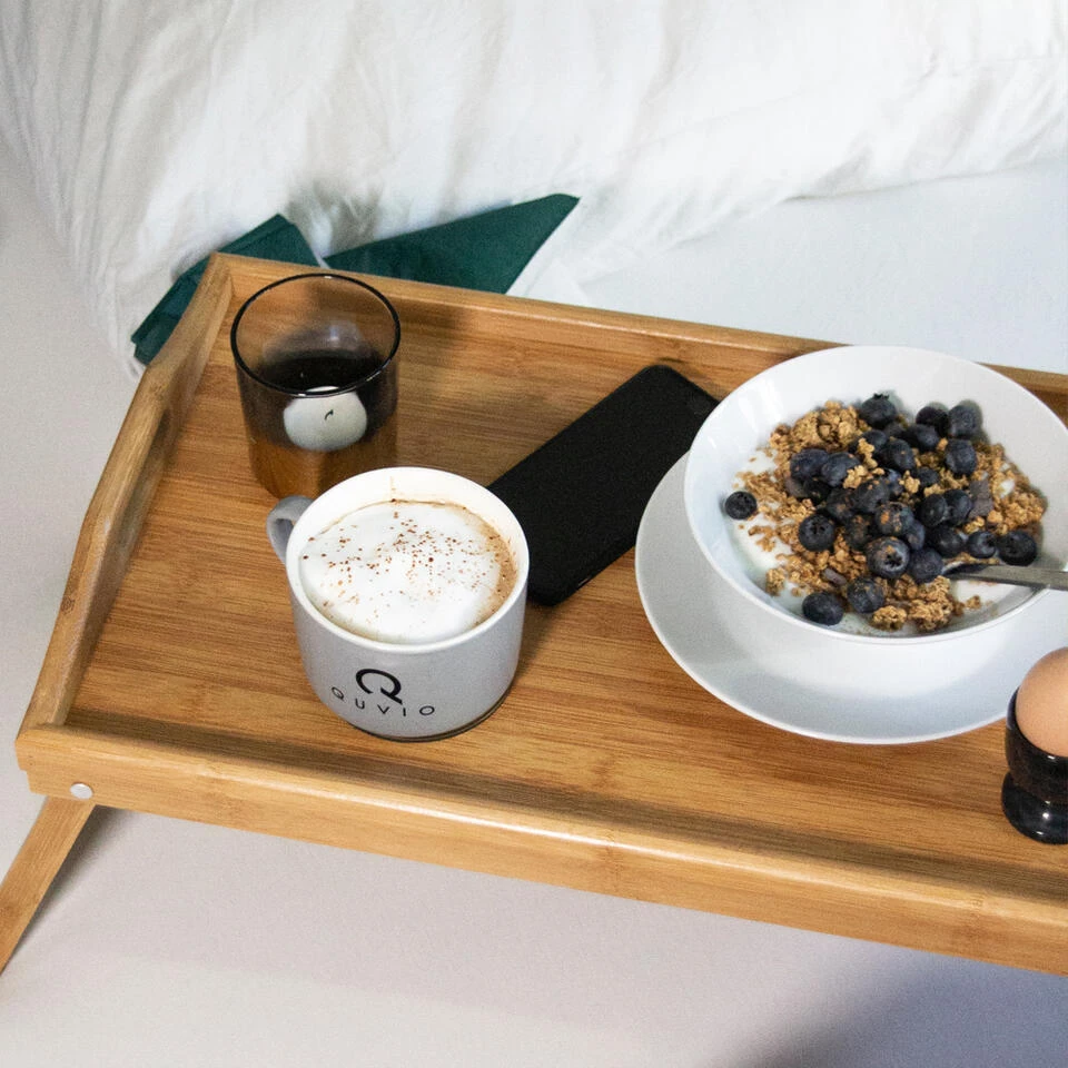 Ontbijtje op bed,nog even werken in bed of op de bank,eten op de bank,heerlijk om te doen,maar soms wel wat onhandig. Je zit vaak ongemakkelijk en hebt eigenlijk geen plek om je spullen goed en veilig neer te zetten. Je mist een tafel. Een klein,compact meubelstuk dat weinig weegt en eenvoudig te gebruiken is. Voorkom geklungel en gebruik dit handige,multifunctionele dienblad bamboe bedtafeltje van het merk QUVIO voor op bed of voor op de bank.