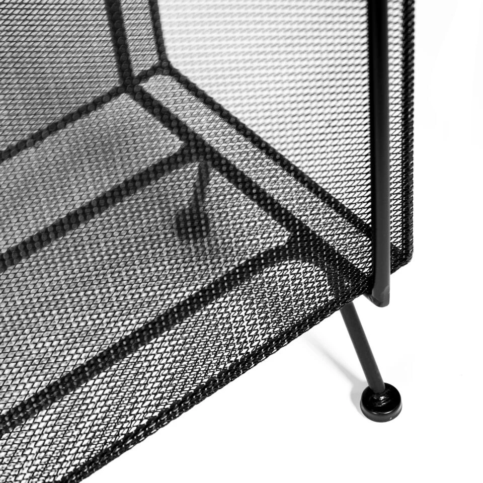 Behalve dat dit product erg praktisch is, ziet het er door de uitvoering in zwart en de combinatie van een buizenframe en draadmetaal heel stijlvol uit. Het staat elegant maar stevig op een zwart metalen poten (buizenframe).