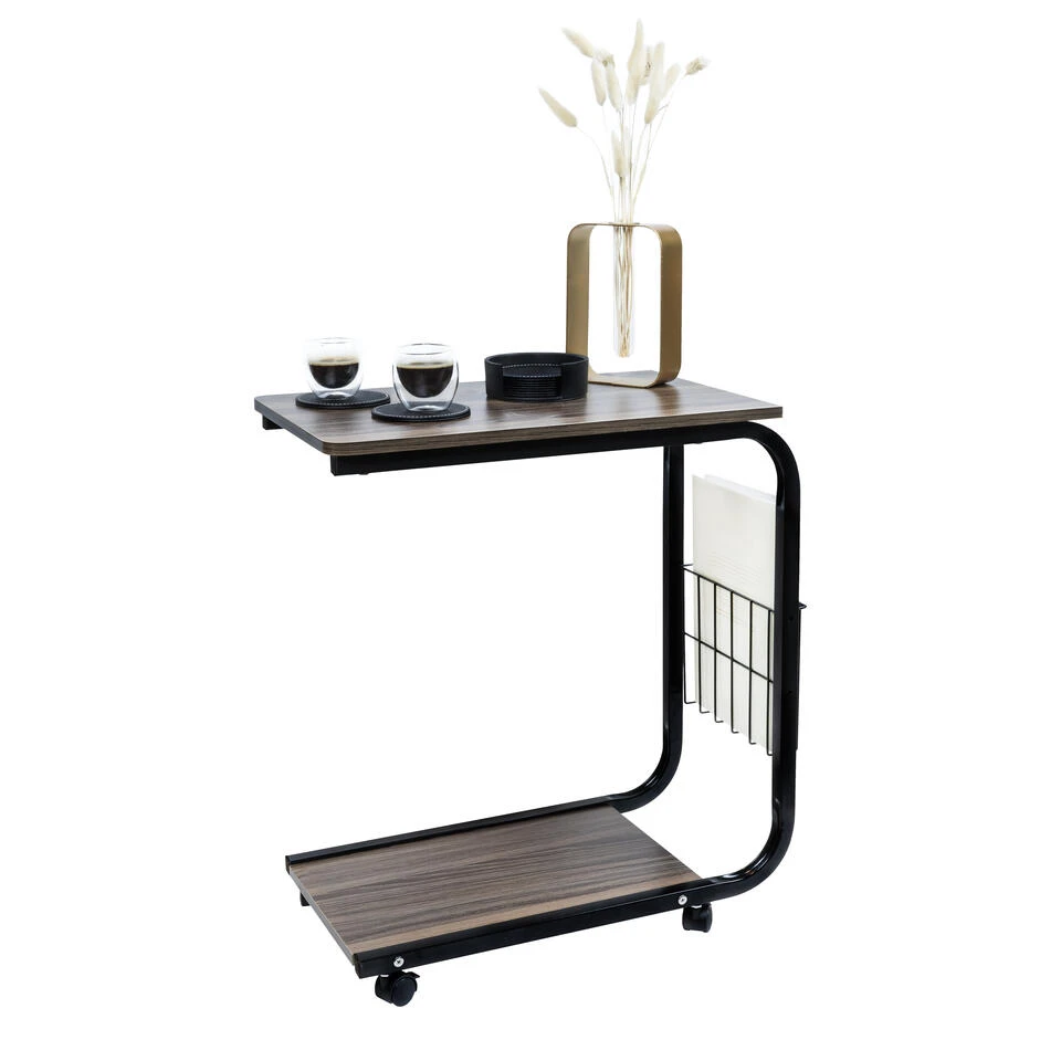 De tafel heeft twee planken. Hierdoor heb je de ruimte om, naast je kopje thee en bordje eten, nog een hoop andere spullen kwijt te kunnen. Denk bijvoorbeeld aan boeken, een tablet, laptop of afstandsbediening(en). Tijdschriften kun je gemakkelijk apart kwijt in het tijdschriftenrek aan de zijkant van het meubel. De tafel staat op wieltjes waardoor het gemakkelijk te verplaatsen is. De vier afzonderlijke remmen zorgen ervoor dat het meubel stevig op zijn plek blijft staan en niet gaat wiebelen.