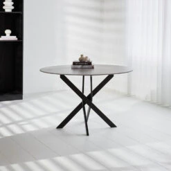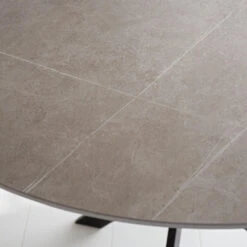 Het blad van de ronde eettafel is gemaakt van sintered stone en bevat een prachtige marmerlook. Sintered stone is een populaire steensoort wat vooral gebruikt wordt in de keukenindustrie. Het is onbreekbaar, water- en vlekproef en gemakkelijk schoon te maken. Vandaar dat sintered stone steeds populairder wordt bij het ontwerpen van meubels. Sintered stone is zeer stevig en oogt natuurlijk. Sintered stone is een natuurlijk materiaal en geeft geen schadelijke stoffen af in het milieu. Het is bestand tegen krassen en is onbreekbaar. Een design eettafel van sintered stone heeft weinig onderhoud nodig en oogt zeer stijlvol!