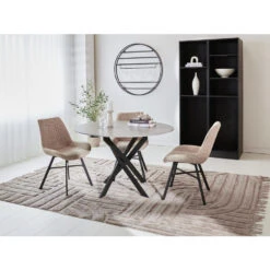 Ronde eettafel Vivian is een stoere en elegante eyecatcher in jouw woning. De eettafel beschikt over een elegant marmerlook blad. Ook bevat de ronde eettafel een uniek spinpoot onderstel. Deze eettafel marmerlook is stijlvol, uniek en zeer stevig. Het blad van de eettafel is namelijk gemaakt van het stevige materiaal sintered stone en bevat een sfeervol patroon. De tafel is verkrijgbaar in verschillende formaten en kleuren. De tafel is ook geschikt voor buiten.