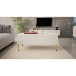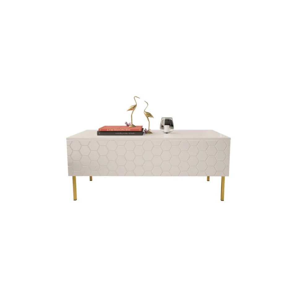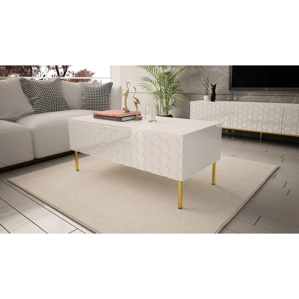 De Salontafel Hexa Wit is een uniek en eigentijds meubelstuk dat je woonkamer transformeert. Het opvallende hexagonale ontwerp zorgt voor een speelse en artistieke uitstraling. Het tafelblad, vervaardigd uit wit gelakt hout, voegt een fris en helder element toe aan je interieur. De stevige metalen poten zorgen voor stabiliteit en duurzaamheid. Deze salontafel biedt niet alleen een praktische ruimte om je spullen neer te zetten, maar dient ook als een decoratieve eyecatcher. Laat je persoonlijkheid zien met de Salontafel Hexa Wit.