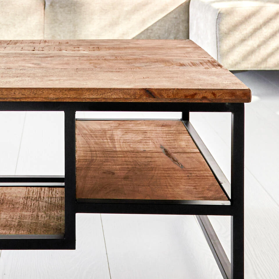 Het blad en de leggers van salontafel Livia zijn gemaakt van massief mangohout. Het mangohout heeft een duidelijk zichtbare houtstructuur, waardoor salontafel Livia een stoere en levendige uitstraling krijgt. Het mangohout heeft een lichte basiskleur en kenmerkt zich door ruige en donkere accenten. Het hout van onze mangohouten producten komt uit India. De mango staat in India voor welvaart, luxe en rijkdom en dat is precies wat onze mangohouten producten uitstralen! Materiaal blad