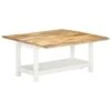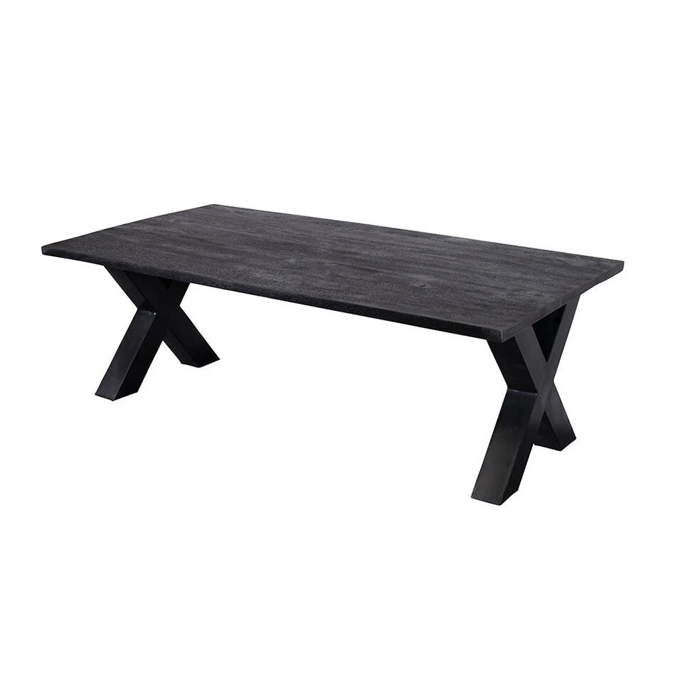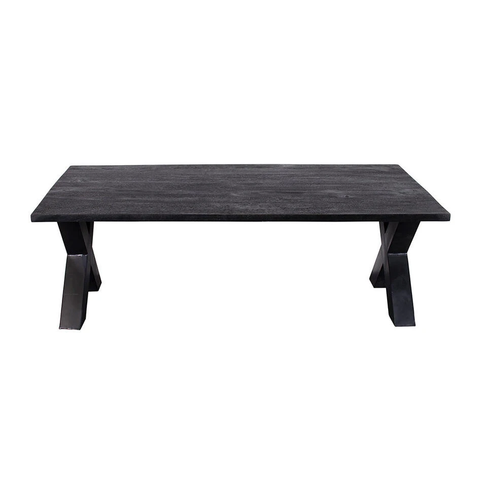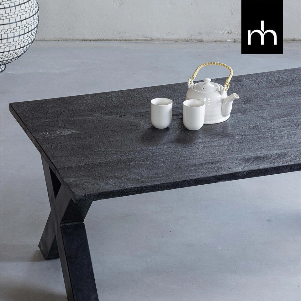 Het mangohouten blad is massief en heeft een dikte van ongeveer 3 centimeter. Het mangohout is eerst gezandstraald, waarna het behandeld wordt met zwarte verfbeits en tenslotte wordt afgewerkt met een donkere natuurlijke bijenwas om het hout te beschermen tegen vocht, vuiligheid en kringen. De X-poten zijn gemaakt van zwart gepoedercoat metaal.