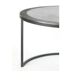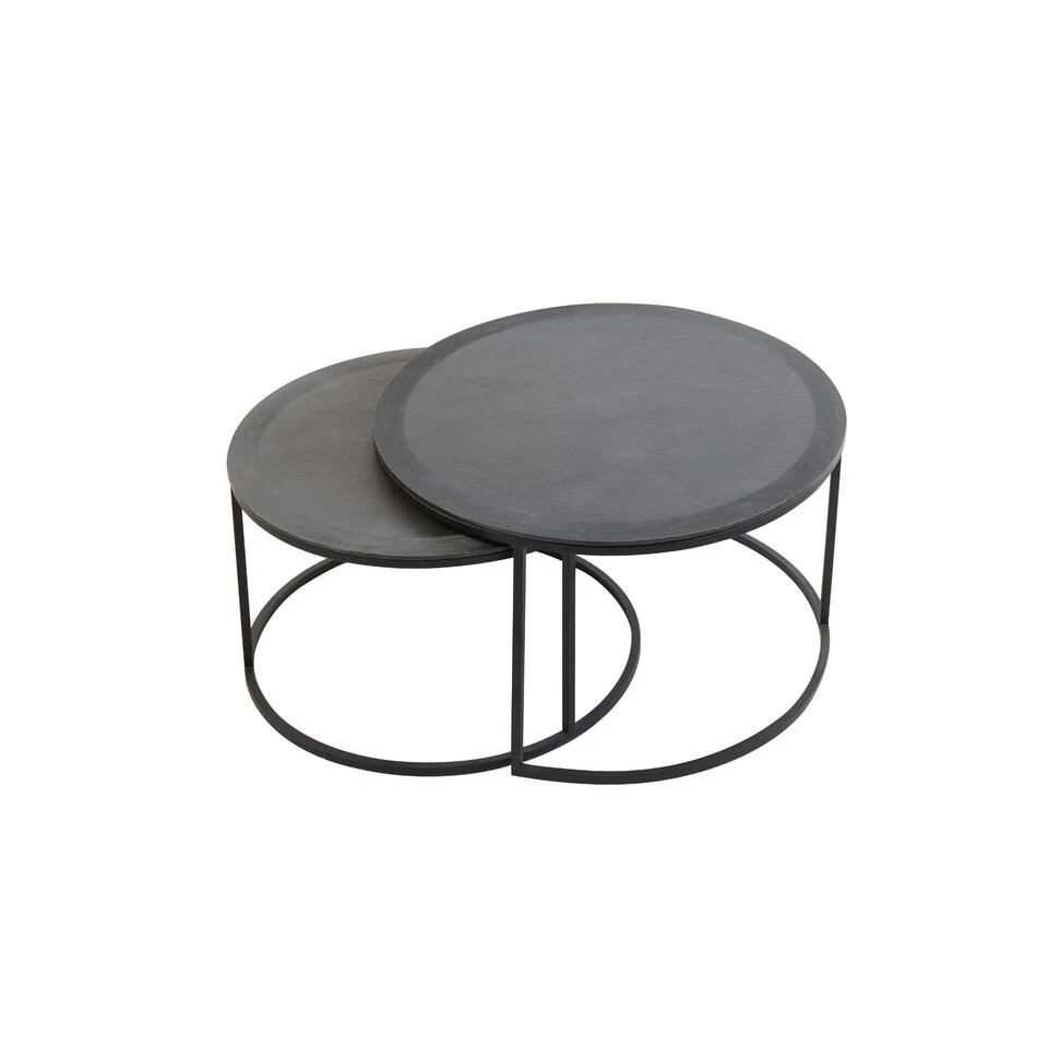 Salontafel Talca van het merk Light & Living bestaat uit een set van 2 tafeltjes. De tafelbladen zijn voorzien van een loodkleurige afwerking met veel robuuste details. Dit zorgt voor een industriële uitstraling. Het frame is afgewerkt in een matzwarte kleur en de tafelbladen hebben een bijzondere rand met gedetailleerde afwerking. Dit zorgt voor een combinatie die in veel ruimtes passend is. Bij gebrek aan ruimte zijn deze salontafels ook gemakkelijk in en onder elkaar te schuiven. Door de ronde vorm zijn de tafels passend in iedere ruimte. Ideaal om voor de bank te plaatsen en een heerlijke kop thee op te zetten. Wij adviseren wel altijd gebruik te maken van onderzetters. De grote tafel heeft een diameter van 75 cm en een hoogte van 45 cm. De kleine tafel heeft een diameter van 67,5cm en een hoogte van 39,5 cm. De tafels zijn handgemaakt en kunnen daardoor kleine oneffenheden bevatten. Dat maakt deze tafels juist zo uniek!