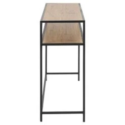 Sidetable Jaxx heeft een eikenkleurig blad en een zwart, metalen frame.