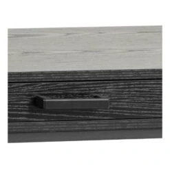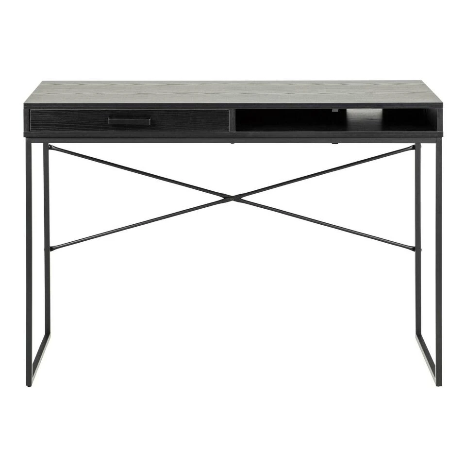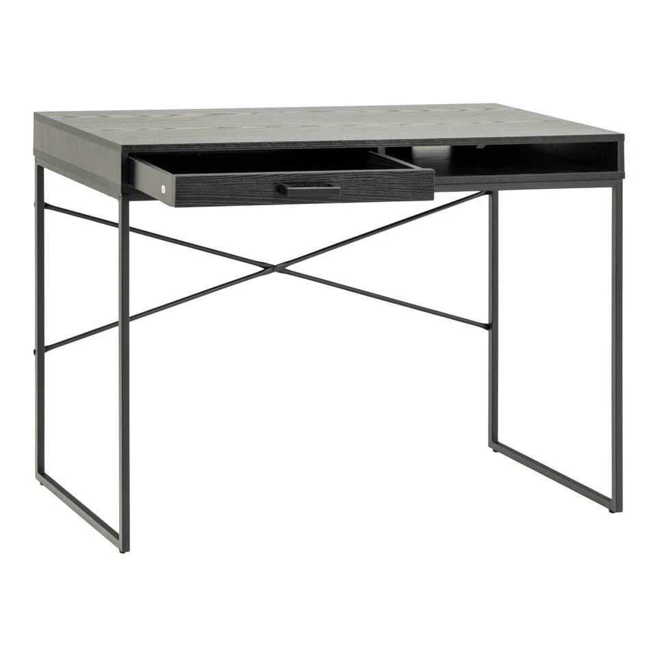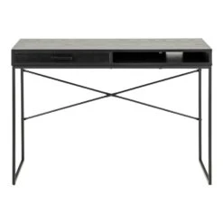 - Materiaal: Blad en lade van zwart ruw essen melamine, onderstel mat zwart ruw gepoedercoat metaal