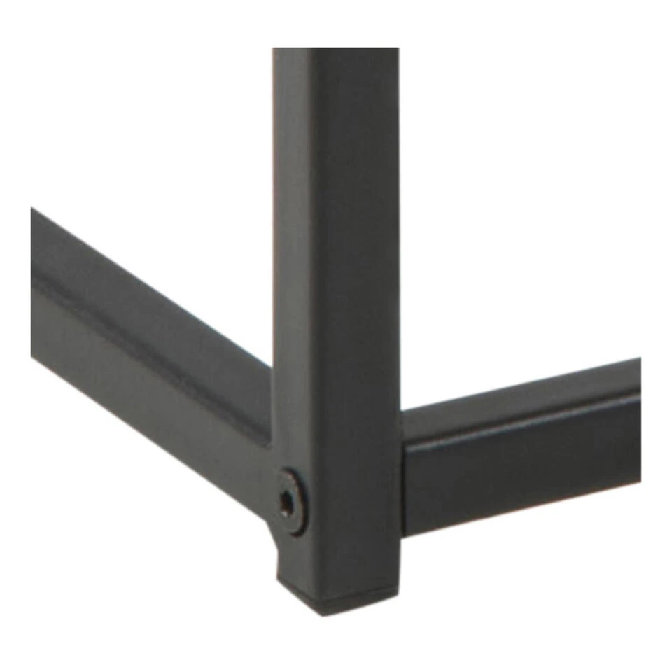 Maak je woonruimte af door dit moderne middenstuk toe te voegen. Licht in zijn constructie en uitstraling, kun je het meeste uit je ruimte halen met deze eigentijdse salontafel. Hij is geïnspireerd op industrieel design en heeft een zwart gepoedercoat metalen frame en een zwart tafelblad met houten structuur.