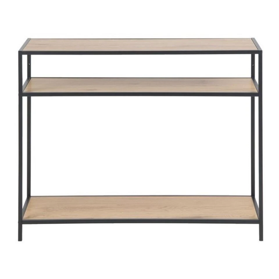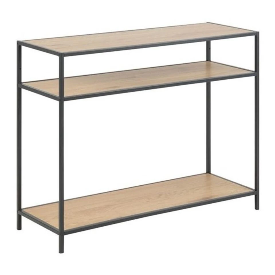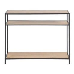 Maak een kamer af met stijl en veel opbergruimte. Maak optimaal gebruik van je ruimte met deze veelzijdige consoletafel, die de persoonlijkheid heeft om te passen bij vele stijlen van inrichting. Hij is perfect voor de gang of de woonkamer, en met het tafelblad en de planken eronder kun je je benodigdheden in stijl opbergen. Het zwart gepoedercoate metalen frame geeft de console een industriële uitstraling en zorgt voor stabiliteit.