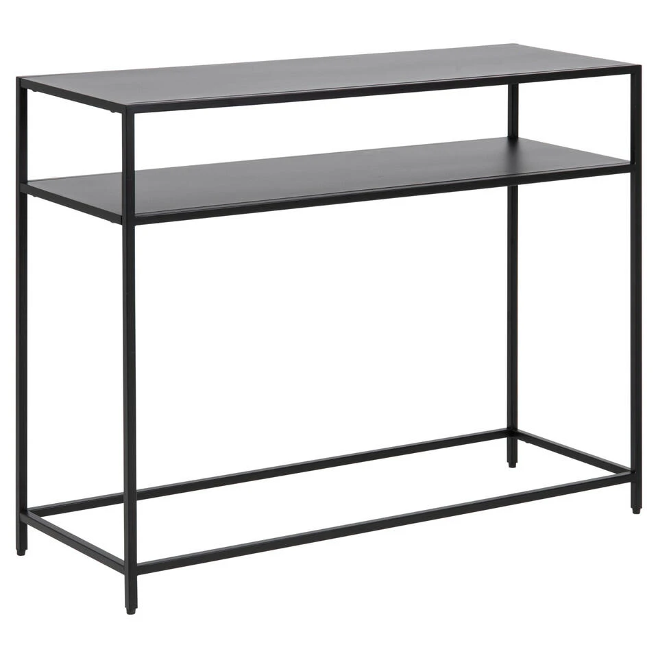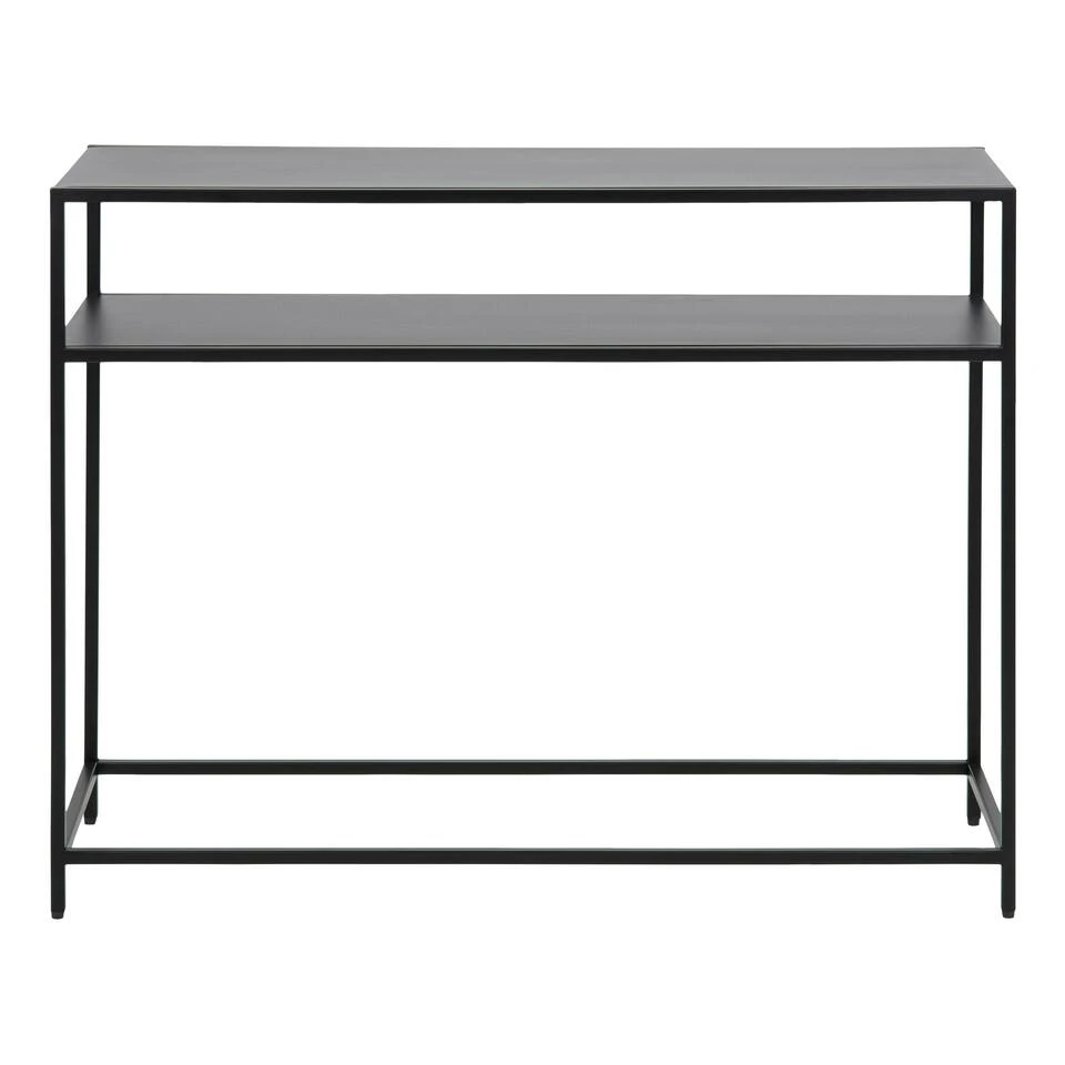 Een eenvoudige, maar decoratieve consoletafel, perfect voor de gang, woonkamer of kleedkamer. De moderne console, met strakke lijnen voegt een industrieel tintje toe door het metalen gepoedercoate onderstel en de planken. Stijl de console met boeken en decoratieve voorwerpen of houd hem praktisch voor sleutels en glazen.
