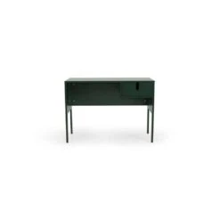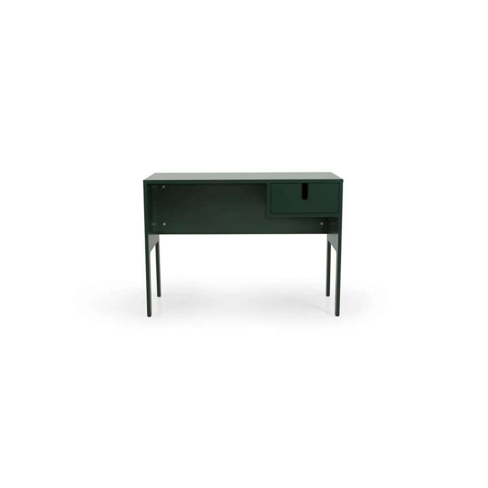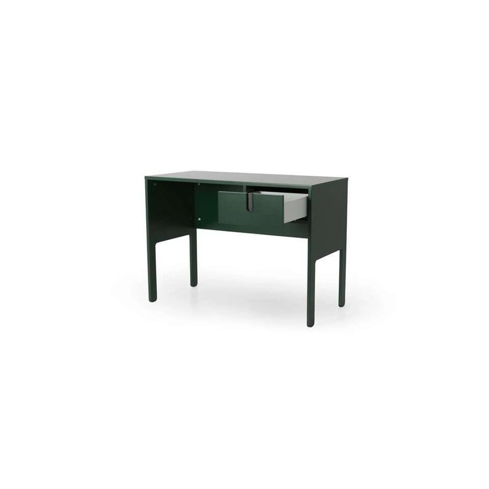 Tenzo bureau Uno is groen en heeft een afmeting van 75x105x50 cm. Dit praktische bureau is gemaakt van MDF. Dit bureau heeft 1 lade voor het opbergen van losse spullen. Op het blad is voldoende ruimte voor je laptop of PC. Ideaal voor schoolgaande kinderen, studenten of als je af en toe een dagje thuiswerkt. De lade is voorzien van softclose en sluit dus geruisloos. Het bureau staat op vier elegante, smalle poten. Dit bureau is te verkrijgen in verschillende kleuren!