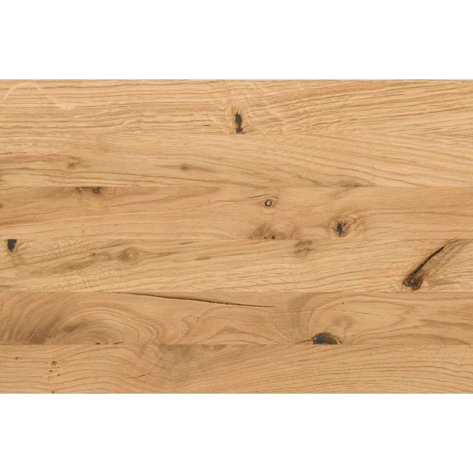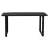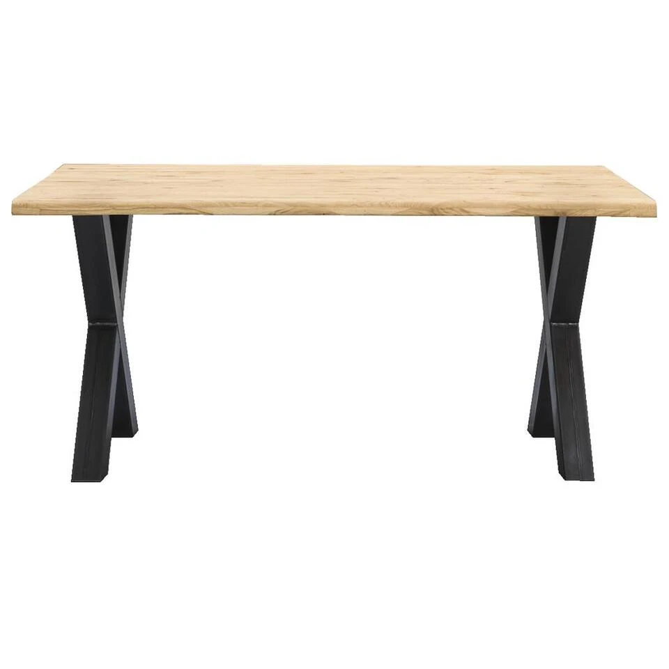 De eettafel heeft een massief eiken tafelblad met boomstamafwerking. Het blad rust op een stevig metalen frame, in de vorm van een X. Hout met metaal is al enige tijd een stoere en populaire combinatie! Het tafelblad heeft een afmeting van 200×100 cm. De tafel heeft een hoogte van 75 cm. Let dus op met het kopen van een bijpassende eetkamerstoelen met leuningen.