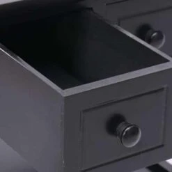 Deze salontafel is gemaakt van paulowniahout en MDF en is duurzaam en stevig. De tafel biedt veel opbergruimte dankzij de 2 lades en het onderste schap. Het stevige tafelblad is ideaal voor het weergeven van decoratieve objecten, fotolijsten en potplanten. Hij is gemakkelijk schoon te maken met een vochtige doek. De bijzettafel is eenvoudig te monteren.