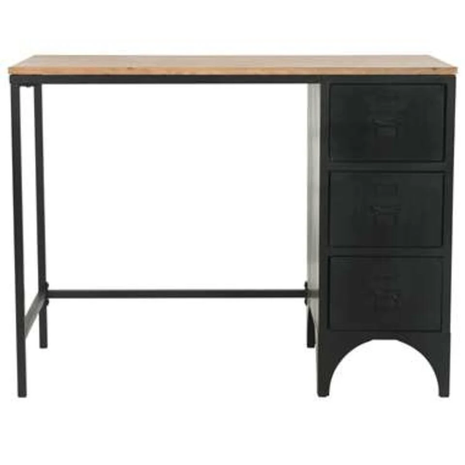 De schrijftafel bestaat uit een stevig stalen frame en een massief vurenhouten blad en is zeer robuust en duurzaam. Het bureau heeft 3 lades die voldoende ruimte bieden om mappen, papieren documenten en andere kantoorbenodigdheden binnen handbereik en netjes geordend te houden. Het stalen frame geeft het bureau een industriële uitstraling. Het bureau is eenvoudig te monteren.