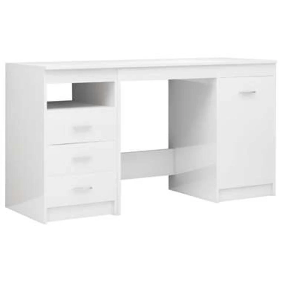 De schrijftafel, gemaakt van hoogwaardig spaanplaat, is stevig en duurzaam. Met 3 lades en 1 vak met deur biedt hij voldoende opbergruimte. Ze zijn ideaal voor het opslaan van boeken, tijdschriften, mappen en andere benodigdheden. Het bureau is gemakkelijk schoon te maken met een vochtige doek.