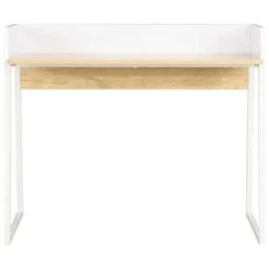 Dit compacte bureau heeft een ingetogen maar praktisch ontwerp en is een handige toevoeging aan je werk- of studeerkamer. De verhoogde achterkant en het grote blad bieden ruimte aan boeken en kleine spulletjes, zoals pennen. Zo kan je alles netjes geordend houden. Dit bureau kan ook gebruikt worden als schrijftafel of knutseltafel.