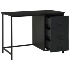 Deze schrijftafel is gemaakt van hoogwaardig staal waardoor hij duurzaam en eenvoudig schoon te maken is. Dankzij de 3 lades kan je boeken en documenten in verschillende categorieƫn organiseren. De lades met 2-sectie kogellagergeleiders zorgen voor soepel openen en sluiten, zelfs bij zware belasting (de lades kunnen volledig uitegrtrokken worden). Elke lade heeft een labelhouder en een metalen handgreep die bijdragen aan de industriƫle uitstraling. De stalen poten met kunststof doppen beschermen je vloer tegen krassen. Dit meubel past perfect in elk huis of kantoor.