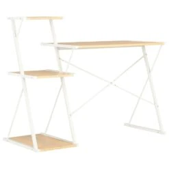 Dit unieke en elegante bureau heeft ruime en stevige planken. Het grote bureau is ideaal voor het plaatsen van je computer en accessoires. Het is een ideaal werkstation voor papierwerk, kantoorwerk en studie, terwijl de geïntegreerde schappen extra opslagruimte bieden voor je boeken, mappen en documenten of decoratieve objecten zoals fotolijsten, en potplanten.