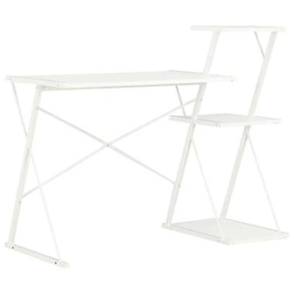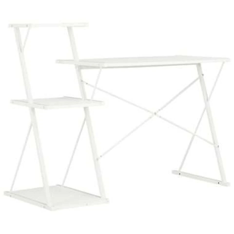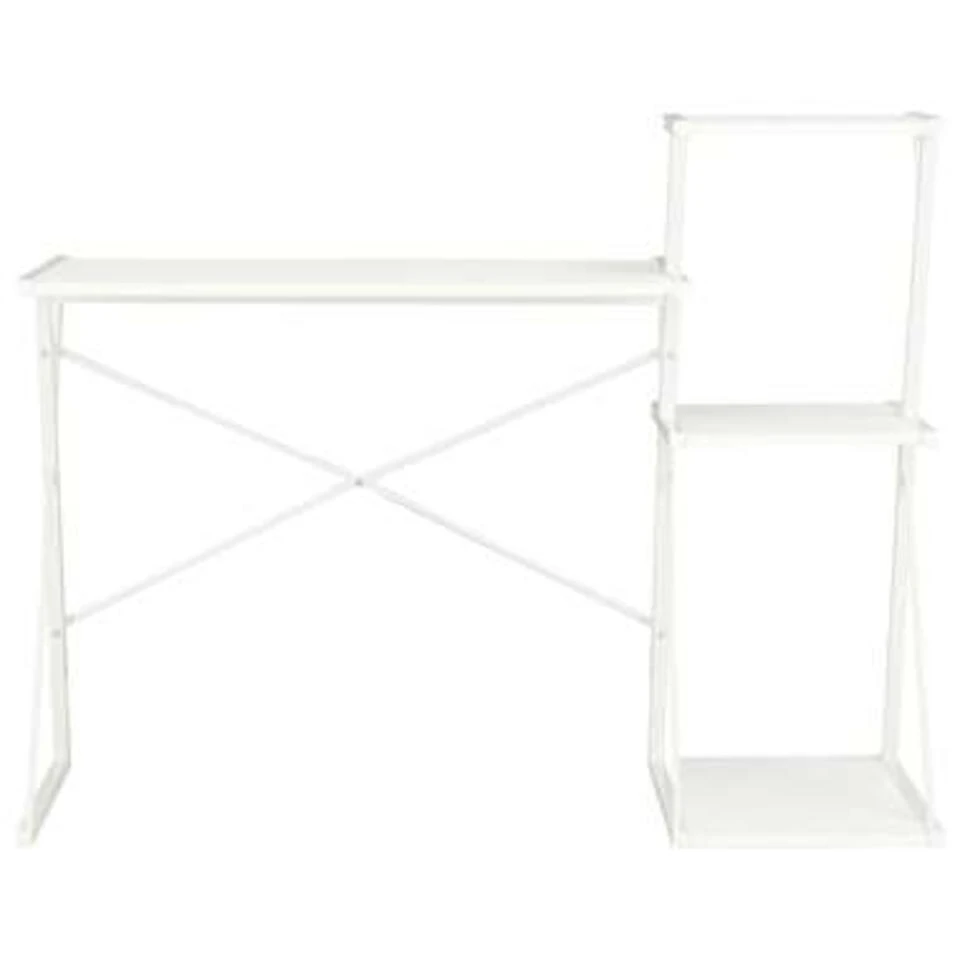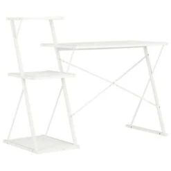 Dit moderne bureau heeft een schap waardoor het een zeer praktisch, handig en veelzijdig meubelstuk is voor gebruik thuis en op kantoor.