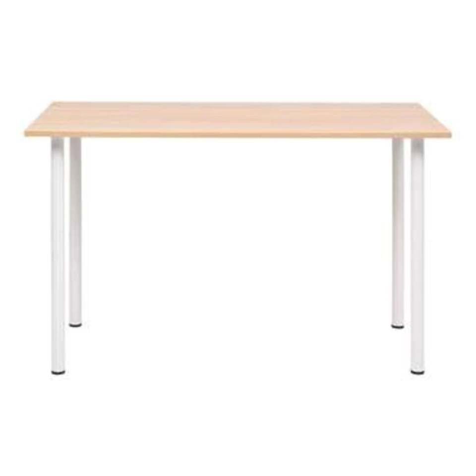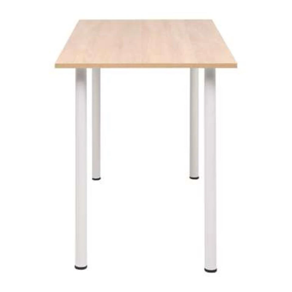 De tafel bestaat uit een bewerkt houten blad met stalen poten, waardoor hij stevig, duurzaam en onderhoudsarm is. Het eenvoudige en toch trendy ontwerp geeft je interieur een schone, opgeruimde aanblik. De tafel is dankzij de melamine-afwerking gemakkelijk schoon te maken met een vochtige doek.
