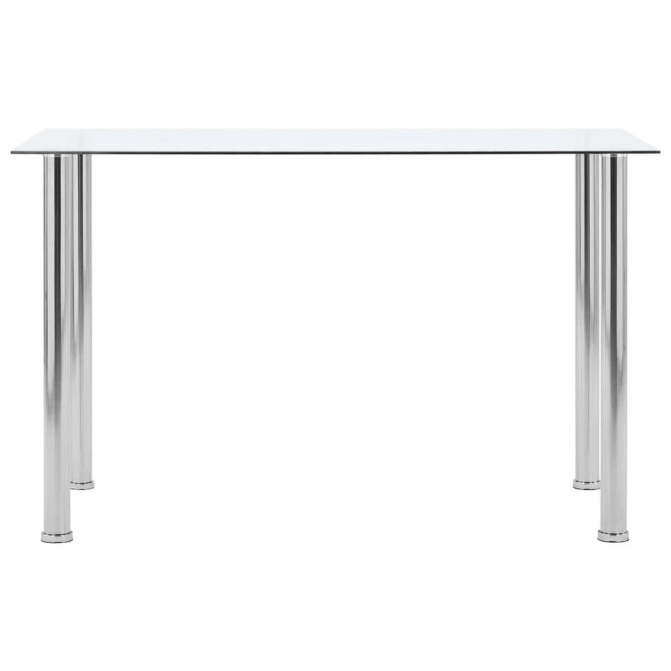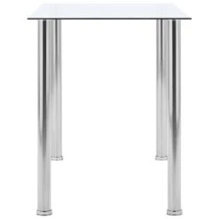 De eettafel heeft een glad, gehard glazen tafelblad dat gemakkelijk te reinigen is met een vochtige doek. Het roestvrijstalen frame draagt bij aan de massieve constructie en zorgt voor hoge stabiliteit en duurzaamheid. De tafel is eenvoudig te monteren.