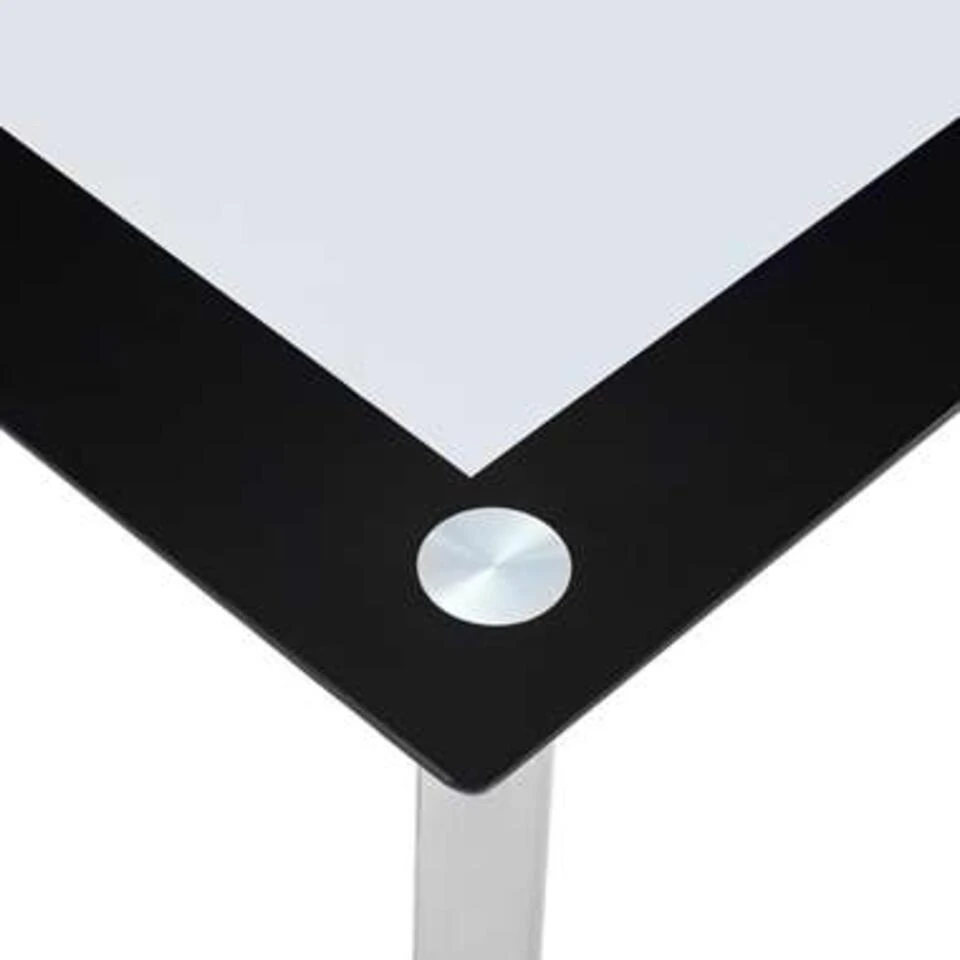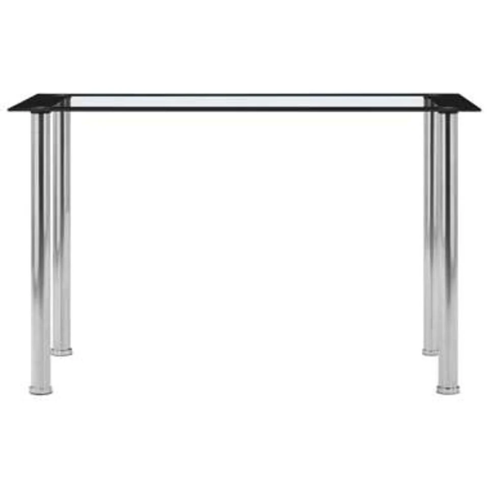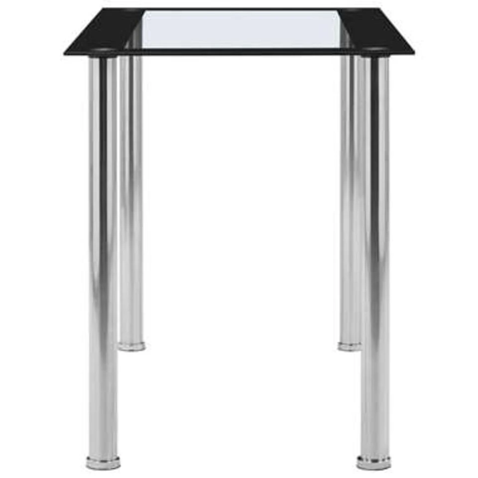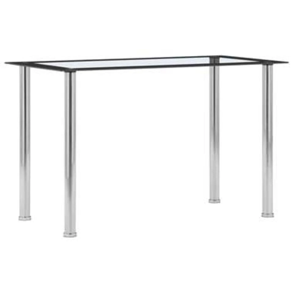 De eettafel heeft een glad, gehard glazen tafelblad dat gemakkelijk te reinigen is met een vochtige doek. Het roestvrijstalen frame draagt bij aan de massieve constructie en zorgt voor hoge stabiliteit en duurzaamheid. De tafel is eenvoudig te monteren.