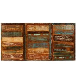 Deze eettafel is gemaakt van massief gerecycled hout, wat betekent dat het de kenmerken heeft van verschillende houtsoorten, zoals teakhout, mangohout en acacia. Hergebruikt hout is stevig, stabiel, duurzaam en mooi. Tekenen van slijtage en het vakmanschap geven elke tafel een unieke uitstraling en dragen bij aan de spectaculaire vintage stijl. Hij is volledig handgemaakt en elke stap van het productieproces wordt met de grootste zorg uitgevoerd, of het nu gaat om polijsten, verven of lakken. De sterke houten frames dragen bij aan de stevige constructie.