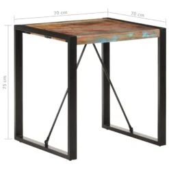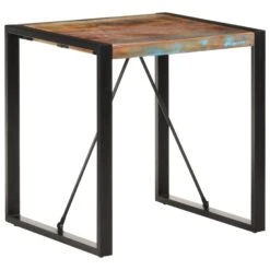 De bistrotafel in antieke stijl is gemaakt van massief gerecycled hout dat afkomstig is van balken, vloeren en steunbalken van oude gebouwen die zijn gesloopt. Dit hout bestaat uit verschillende houtsoorten, zoals grenen, teak en beuken. Dit betekent dat het teruggewonnen hout de kenmerken van deze verschillende houtsoorten heeft. Gerecycled hout is al verouderd, verweerd en gedroogd en krimpt en buigt daarom niet. Deze tafel met elegante houtnerven maken elk meubelstuk bijzonder en net iets anders dan de rest. Daarnaast dragen de sterke gepoedercoat stalen poten bij aan de stevigheid van de tafel.