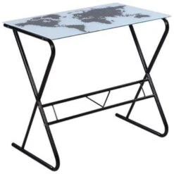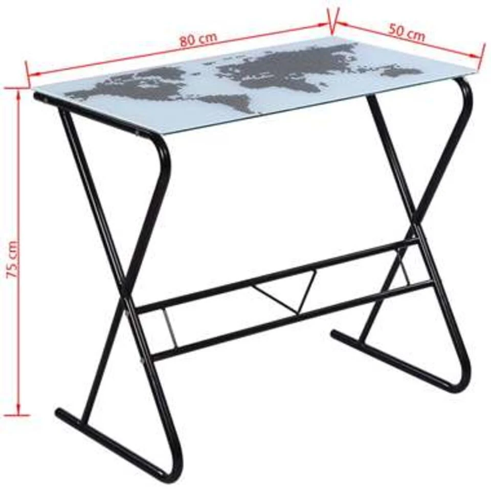- Materiaal: Bureaublad van gehard glas + ijzeren frame