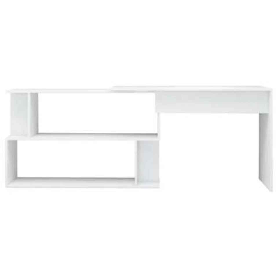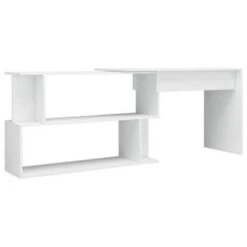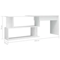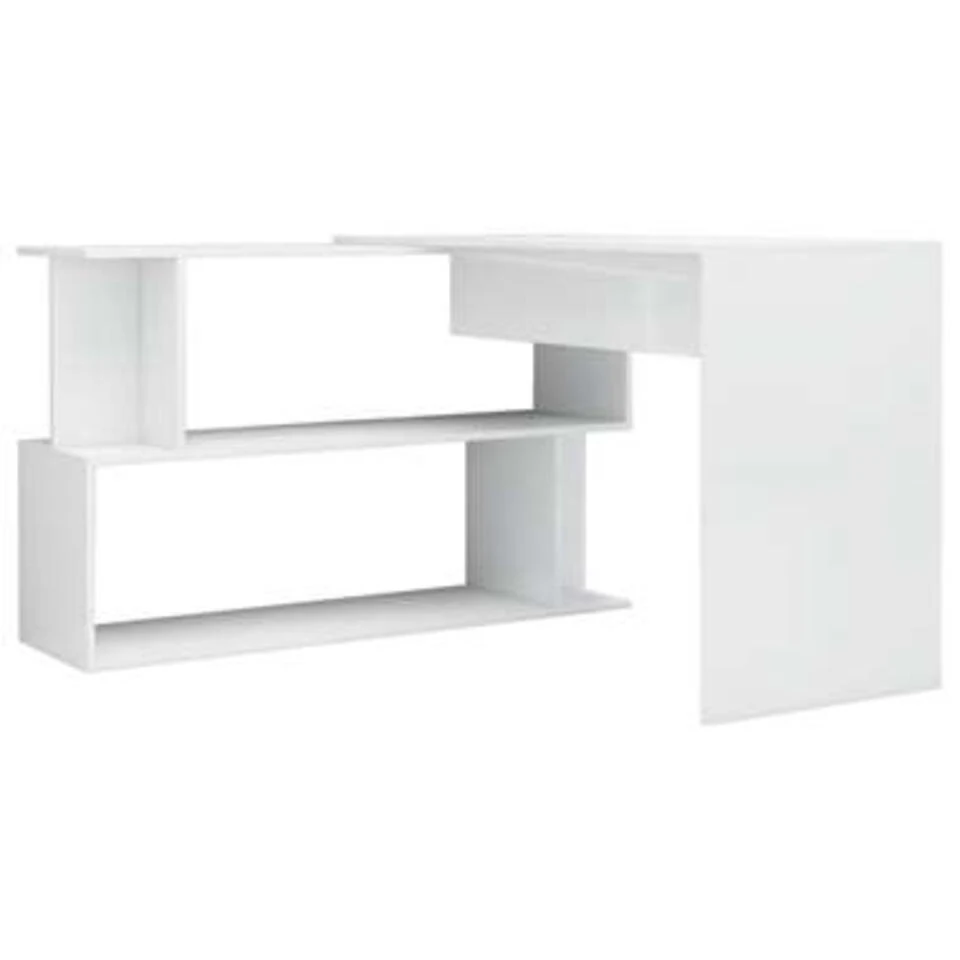 Dit bureau heeft een onderscheidend, draaiend ontwerp waardoor het veranderd kan worden in een hoekbureau om in verschillende inrichtingen te passen. Het is gemaakt van hoogwaardig bewerkt hout waardoor het stevig en duurzaam is. Deze schrijftafel heeft ruime open vakken waardoor hij veel opbergruimte biedt en perfect is voor kantoren, slaapkamers en huizen met beperkte ruimte! Dit meubel kan ook als haltafel gebruikt worden.